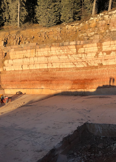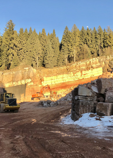 The Bomba Toerle quarry enjoys a central position among to the Plateau: it is in fact located on the western slopes of the mountain of the same name, immersed in the woods that surround the town of Asiago. Theater of one of the bloodiest battles of the First World War, from this quarry we extract mainly the Rosso Asiago marble in considerable quantities and the Bianco Perlino. It is not uncommon to find some beautiful fossils among the marble grit, evidence of the sedimentary origin of the rock and the presence of the sea more than 35 million years ago.